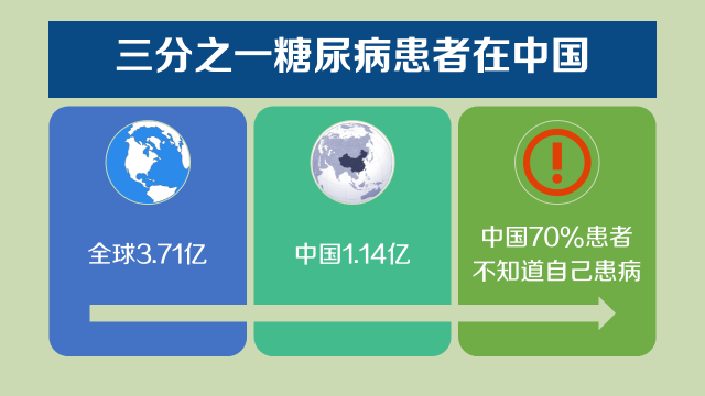 据统计,中国目前糖尿病患者人数高达1.14亿,全世界每三到四个糖尿病患者就有一位来自中国。